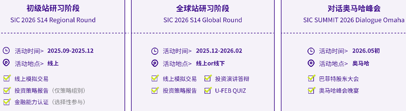 SIC商赛提供高规格国际参与机会,如亲临伯克希尔股东大会、对话华尔街金融精英、参访全球知名金融机构等,赋予选手与行业领袖零距离交流的稀缺经历。其官方认证(如美国经济教育学会)及高校学术支持(如MIT、哥大)进一步强化了赛事的专业性与权威性,形成独特的“实践+学术”双背书。